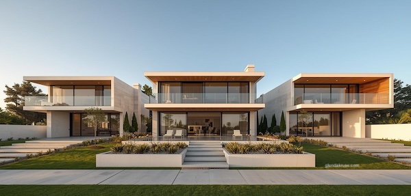 Modern style homes are minimalistic and intentional, designed with simplicity and function in mind. They focus on clean lines, practical layouts, and a lack of unnecessary decoration. These homes often feature flat or low-pitched roofs, uniform windows and doors, and consistent building materials, creating a cohesive and structured look.